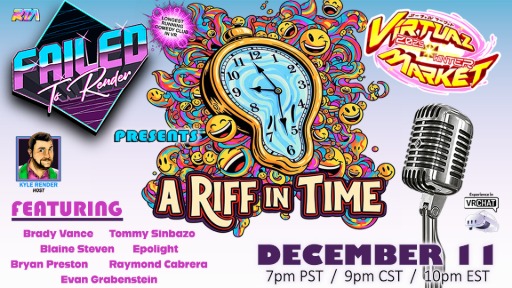 Join the Failed to Render Comedy Club (Group Code: FTRC.4662) for a special event: "A Riff in Time"! Comics will take the stage and improvise hilarious riffs based on random memes that appear on the TV screen. No prep, no mercy, just pure off-the-cuff chaos. Featuring: - Brady Vance - Blaine Steven - Epolight - Bryan Preston - Raymond Cabrera - Evan Grabenstein - Tommy Sinbazo Don’t miss it, this is going to be a blast!