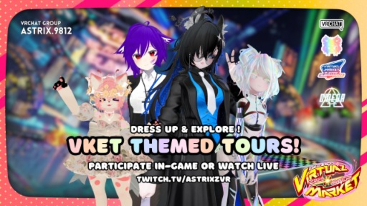 AstrixZ's Fashion Tours have returned for this season of Virtual Market! Dress up and Adventure with us while we go through the Vket Winter Worlds with style! With Omega by AstrixZ, every occasion is one to style for! Meet new friendly individuals who are intertested in Virtual Fashion! Friendly for Beginners and Long Time Players! Explore Vket with AstrixZ: Global Vket Ambassador! * PC & PCVR Friendly. Quest & Android for selected worlds only. HOW TO JOIN? Join the VRChat Group: https://vrc.group/ASTRIX.9812 Watch the Livestream: (Available on Twitch, Youtube & KICK): https://www.twitch.tv/astrixzvr GIMIMCKS For Tour 1: The Lucky Color is: Purple, Pink, Gold The Lucky Style is: Street Casual Let's make stylish memories and take pretty photos together this Vket Winter 2025!