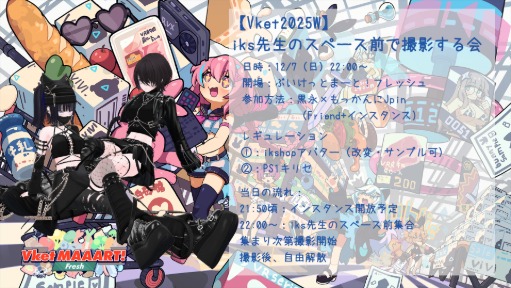 「バーチャルマーケットの会場を一緒に巡る人を探したい!」「Vket会場での集会を企画したので、多くの人に参加してもらいたい!」 「ブースにいる時間を告知して、来場者と交流したい!」など、来場時間や集会の告知ができる掲示板です。 どなたでもマイページから情報登録が可能です。