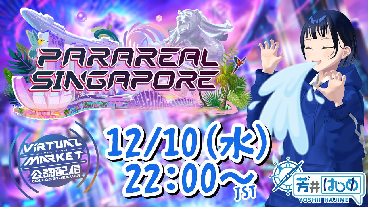 やっほー!バーチャル高校生の芳井はじめです! 8回連続8度目の公認配信者!甲子園強豪校の風格とベテランの貫禄を併せ持つ私が今回もバーチャルマーケットの魅力をお届けしていきます! 今回訪れるのはパラリアルシンガポール!マーライオン以外に何が有名なのかさっぱりわからないので新鮮な気持ちで巡っていきたいと思います!! 「そもそもVketってなに?」「興味あるけどどうやって遊びに行くの…?」といった初心者の人の質問はいつでも大歓迎です!ぜひ遊びに来てね~!!✌